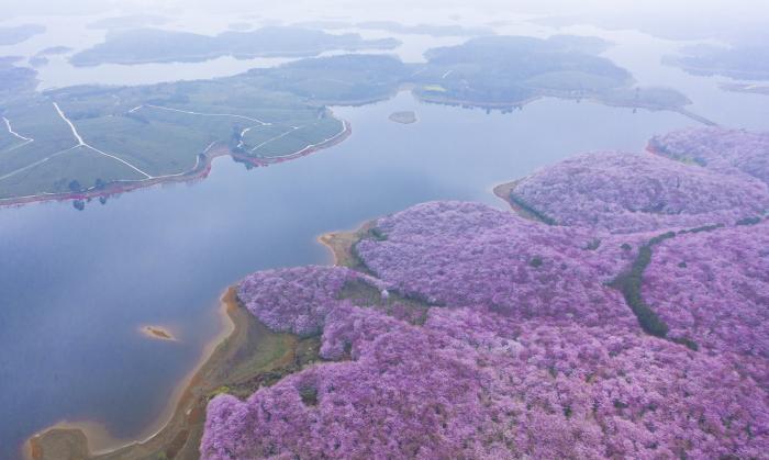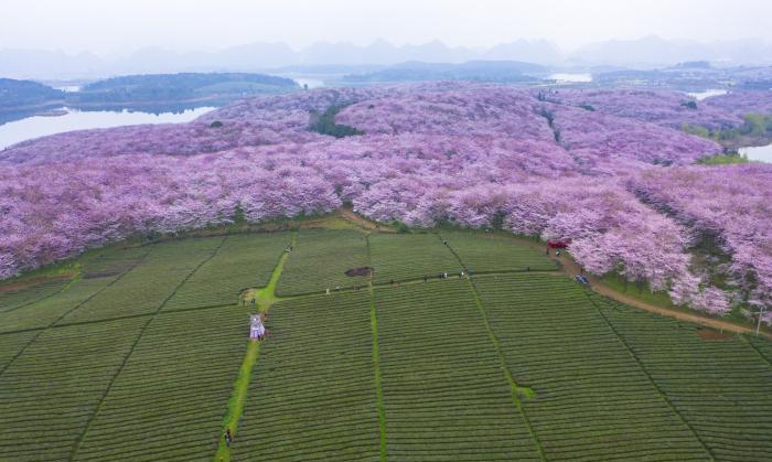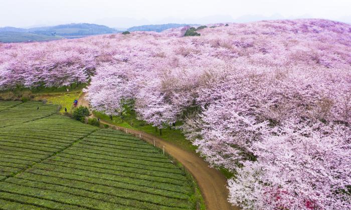 貴州平壩櫻花位於貴安新區平壩農場,這裡的櫻花面積超級大。如果想在短時間內看完,可以透過航拍。藉助無人機的眼睛,憑高遠眺,看到震撼人心的櫻花海洋。