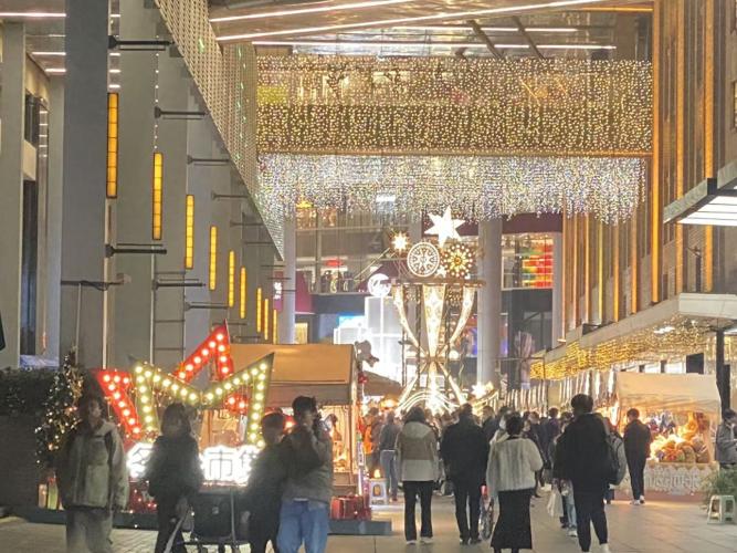 冬日的燈光溫暖,也點亮了節日的氛圍感。從即日起,為期一個月的尋“芯”而來冬日集市在南京路六合路舉辦。相關負責人介紹,本次集市共設定了近50個攤位,與夏季的“百里好市”相比又多了不少,其中主要以特色美食、文創商品為主。與夏天夜間市集的潮酷特色不同,冬日裡的市集裡,非遺製作和熱氣美食成為亮點。