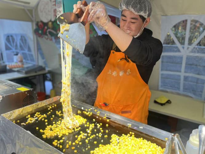 冬日裡,一口熱氣騰騰的美食最是誘人,這也是此次六合路市集的一大賣點。玉米芝士、關東煮、現制烤梨、糯米糕……這些充滿煙火氣的美食讓消費者意猶未盡。