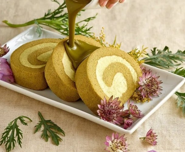 - 桂花淋醬: 乾桂花加熱水泡開,悶5分鐘釋放香氣。加入蜂蜜拌勻。若想讓淋醬定型好看,可加入泡軟融化的2g吉利丁液(此步可省略)。淋醬放涼備用。
