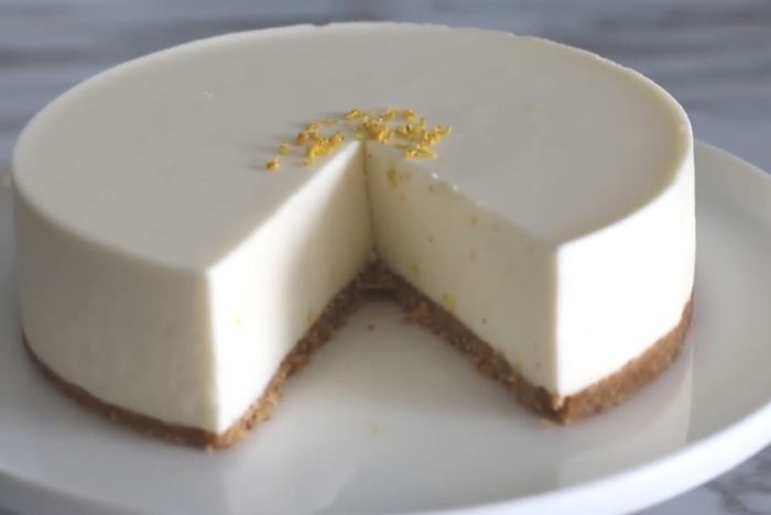 - 組合冷藏: 把拌好的芝士糊倒入準備好的餅乾底模具中。輕震幾下消除大氣泡。蓋上保鮮膜,冷藏至少4小時,最好過夜。