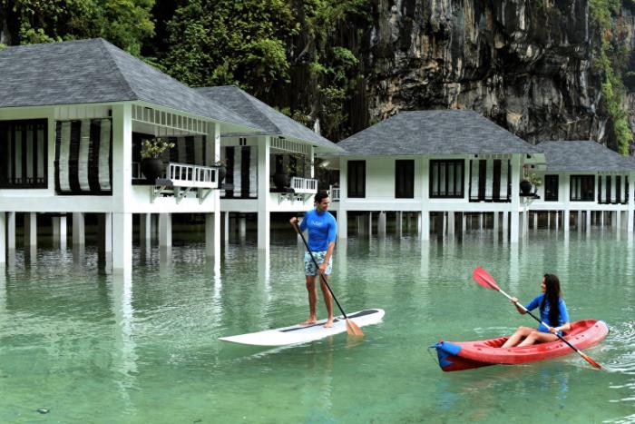 為了讓旅客有定製化的行程,度假村還會安排浮淺在吃完早餐後,旅客只要穿好浮潛裝備,拿著誘餌就可吸引到一大群魚靠近,享受與魚共舞的樂趣,若不想下水,度假村也都會有獨木舟供旅客使用,旅客可以在小海灣划船,觀賞美麗的海景、山景。