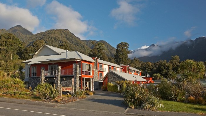 • 在福克斯冰河小鎮,算是當地設施較好、較新的住宿。位置不錯,步行可到餐廳、咖啡館和超市(很小)。部分房間有山景。提供不同房型(標準房到套房)。有餐廳和酒吧。由於福克斯住宿選擇本來就不多,這家算是可靠舒適的據點。對於參加冰河健行或要去Lake Matheson的人來說很方便。記得小鎮都很早關門,超市東西也不多,最好先在霍基蒂卡或大一點的城鎮採買好。